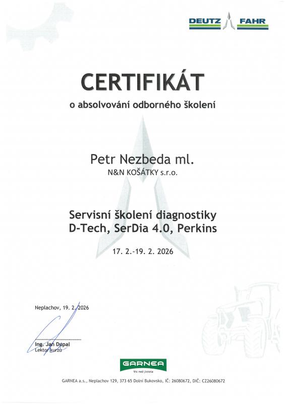 PETR NEZBEDA ml. - DEUTZ-FAHR Servisní školení diagnostiky D-Tech, SerDia 4.0, Perkins (17. až 19. 2. 2026)