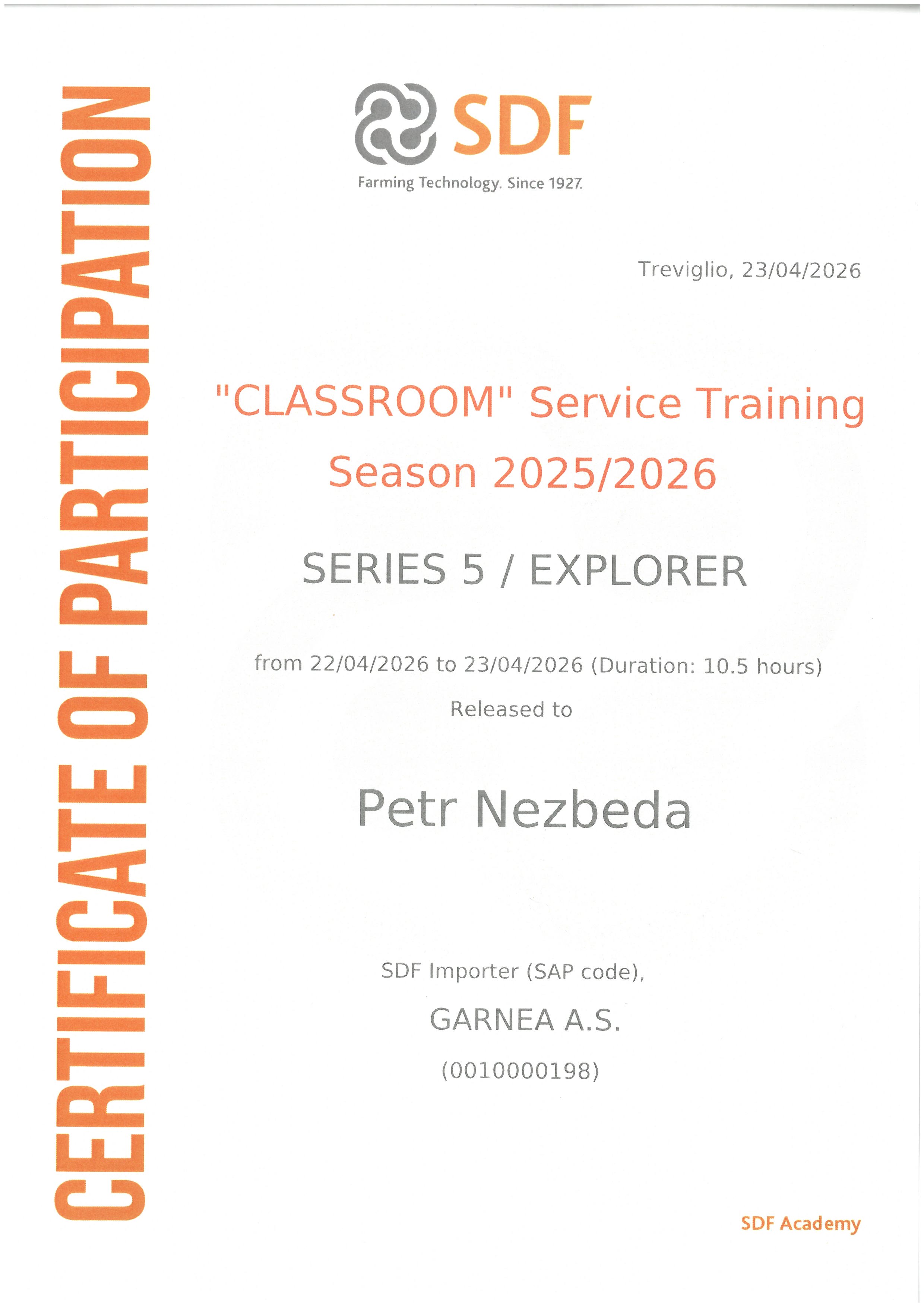 Na základě rozhodnutí o dalším strategickém směřování firmy N&N KOŠÁTKY s.r.o., posílení její stability a dalšímu rozvoji v následujících letech, uzavřeli její majitelé, Aleš a Petr Nezbedovi, smlouvu o prodejním a servisním zastoupení německé značky DEUTZ-FAHR. Smlouva o zastoupení, která se vztahuje na Středočeský a Liberecký kraj, byla uzavřena s firmou GARNEA a.s.
