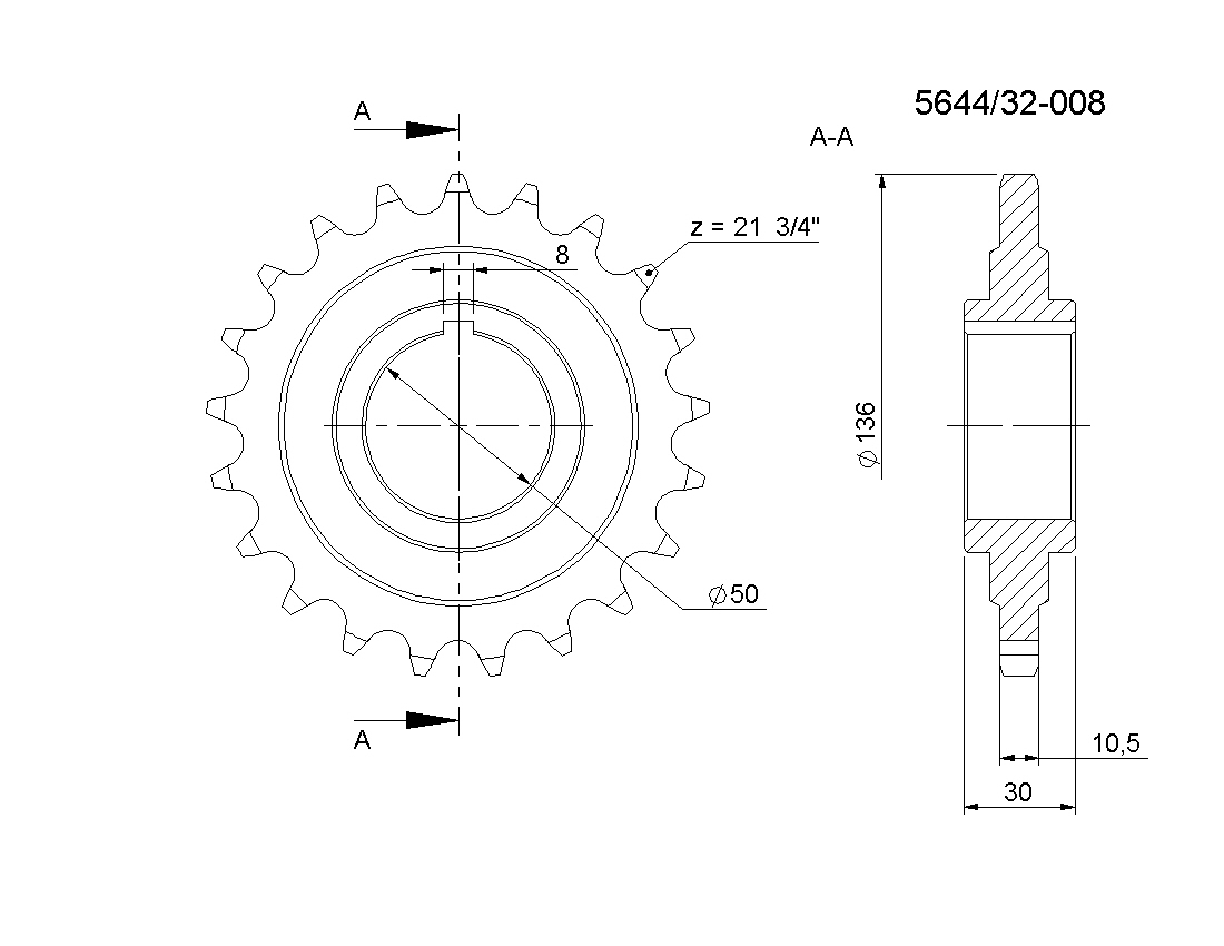 Ozubené kolo Z=21 Fi 50 mm