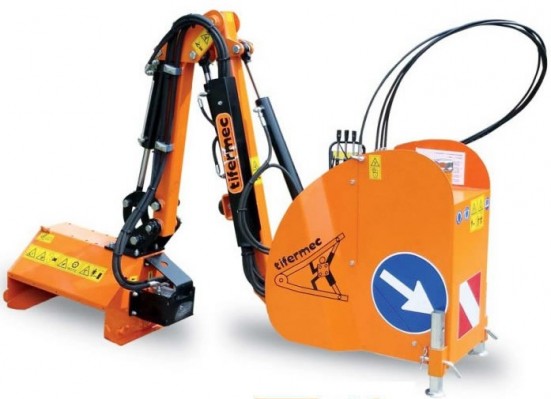 Dosah 3-3,8 m, pro traktory o výkonu od 70 kRamenový mulčovací vyžínač s vyžínací hlavou s oběma smysly otáčení, zdvojeným hydraulickým systémem, dálkovým mechanickým ovládáním z kabiny traktoru a hydraulickým jištěním proti nárazu. Systém plovoucí polohy žací hlavy, výškově nastavitelný opěrný válec, čelní a zadní ochrany, pohon čerpadlem na vývodovém hřídeli traktoru. Vyroben z vysoce kvalitních materiálů, zapoudřené broušené čepy.