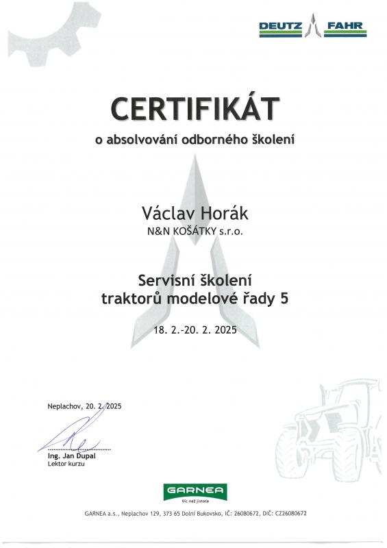 VÁCLAV HORÁK - DEUTZ-FAHR Servisní školení traktorů modelové řady 5<br />(18. až 20. 2. 2025)