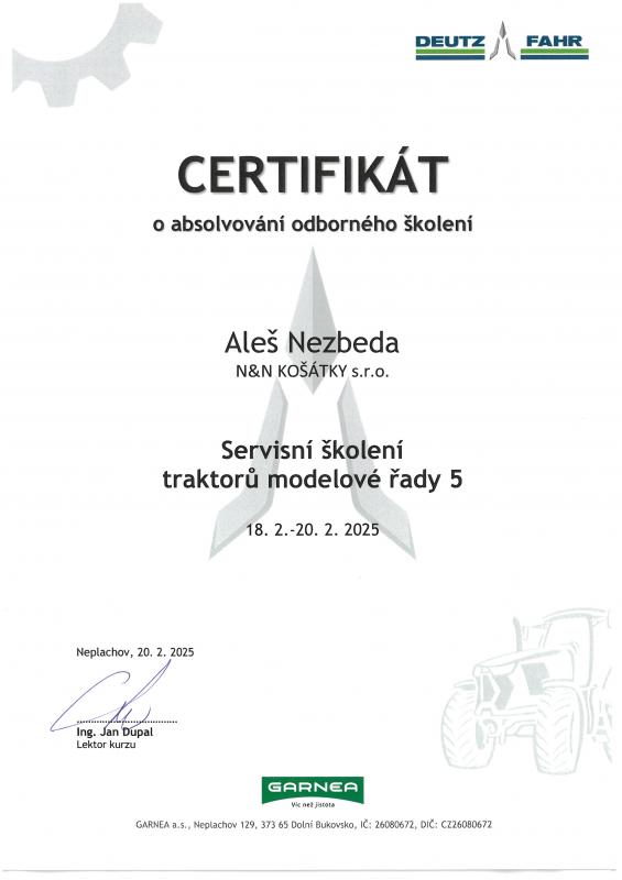 ALEŠ NEZBEDA - DEUTZ-FAHR Servisní školení traktorů modelové řady 5<br />(18. až 20. 2. 2025)