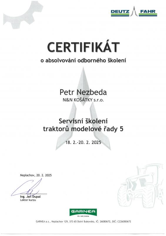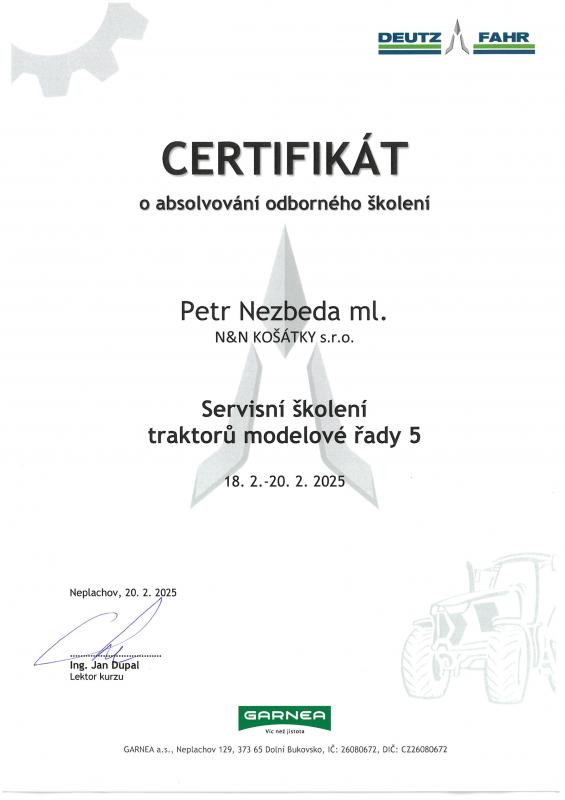 PETR NEZBEDA ml. - DEUTZ-FAHR Servisní školení traktorů modelové řady 5<br />(18. až 20. 2. 2025)