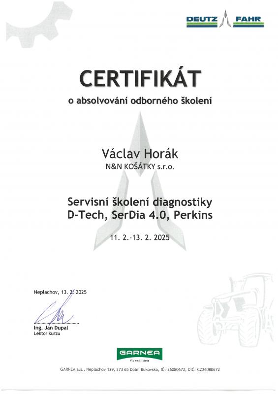 VÁCLAV HORÁK - DEUTZ-FAHR Servisní školení diagnostiky D-Tech, SerDia 4.0, Perkins<br />(11. až 13. 2. 2025)