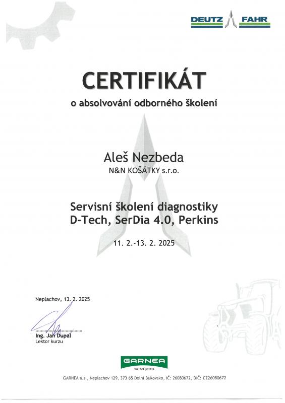 ALEŠ NEZBEDA - DEUTZ-FAHR Servisní školení diagnostiky D-Tech, SerDia 4.0, Perkins<br />(11. až 13. 2. 2025)
