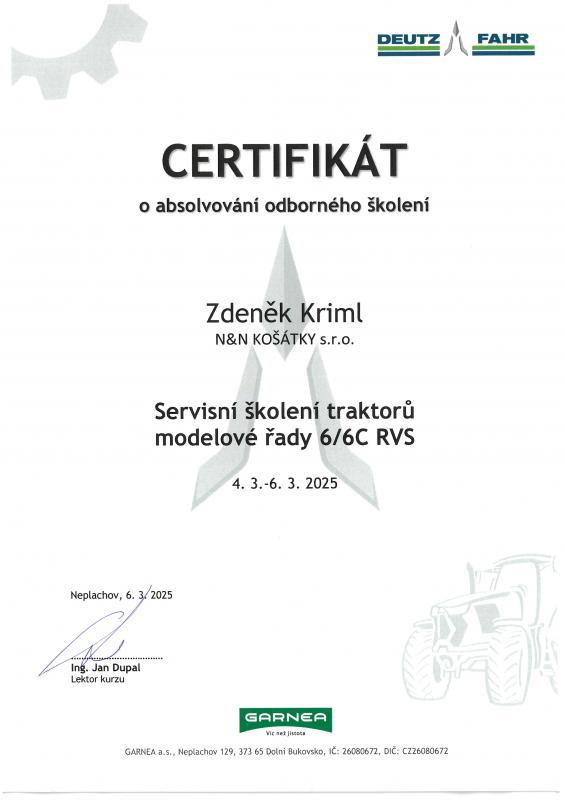 ZDENĚK KRIML - DEUTZ-FAHR Servisní školení traktorů modelové řady 6/6C RVS<br />(4. až 6. 3. 2025)