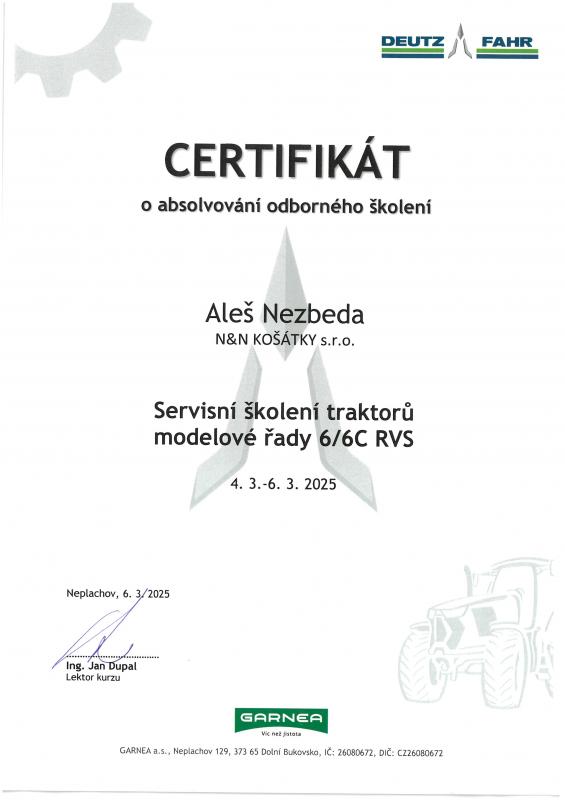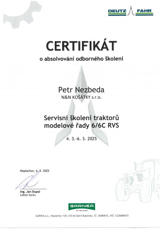 PETR NEZBEDA ml. - DEUTZ-FAHR Servisní školení traktorů modelové řady 6/6C RVS<br />(4. až 6. 3. 2025)