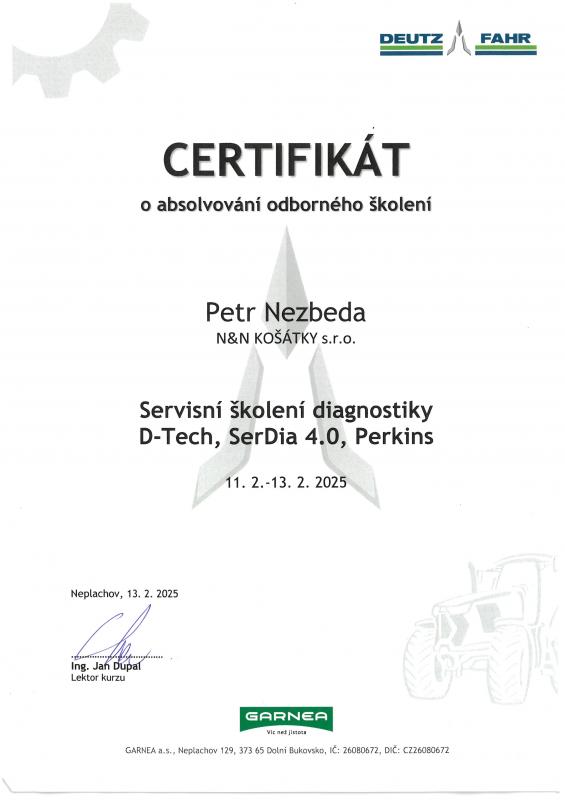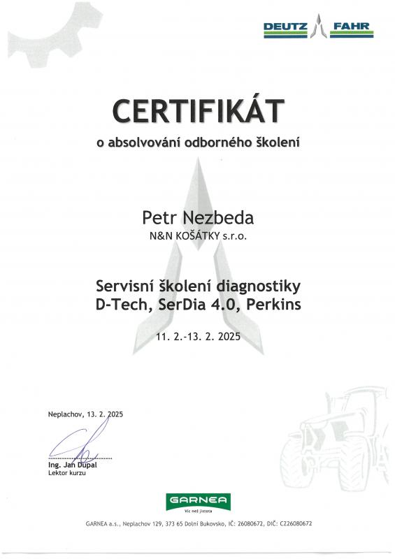 PETR NEZBEDA - DEUTZ-FAHR Servisní školení diagnostiky D-Tech, SerDia 4.0, Perkins<br />(11. až 13. 2. 2025)