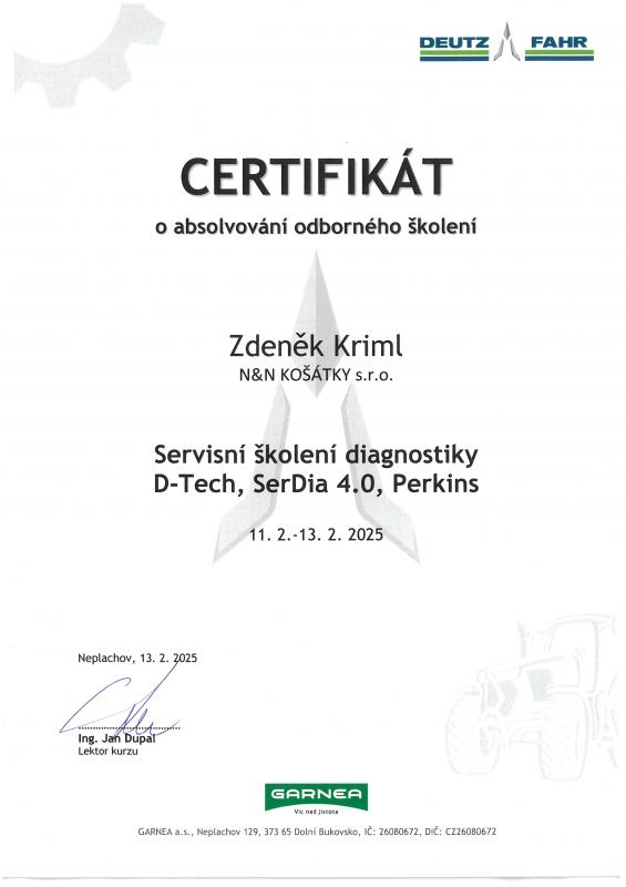 ZDENĚK KRIML - DEUTZ-FAHR Servisní školení diagnostiky D-Tech, SerDia 4.0, Perkins<br />(11. až 13. 2. 2025)
