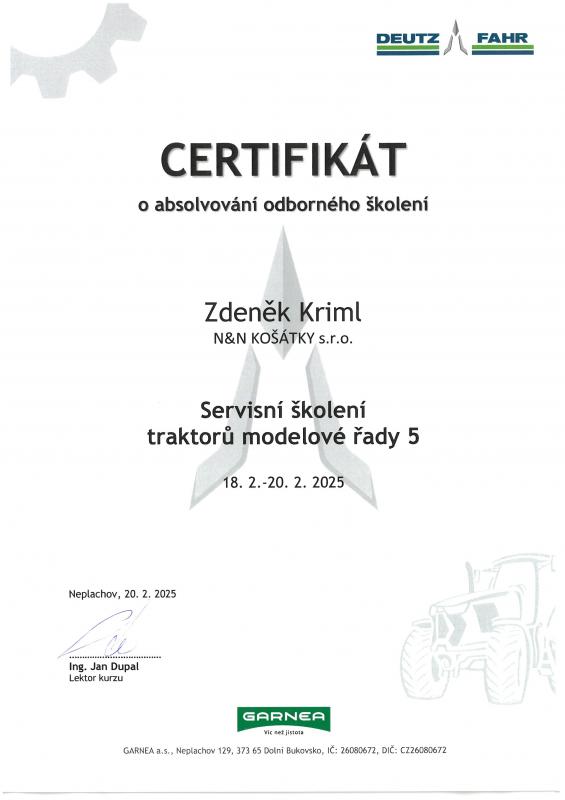 ZDENĚK KRIML - DEUTZ-FAHR Servisní školení traktorů modelové řady 5<br />(18. až 20. 2. 2025)