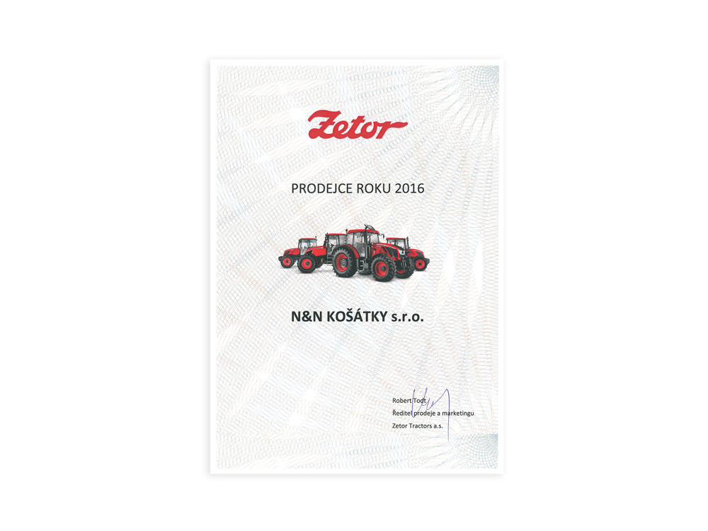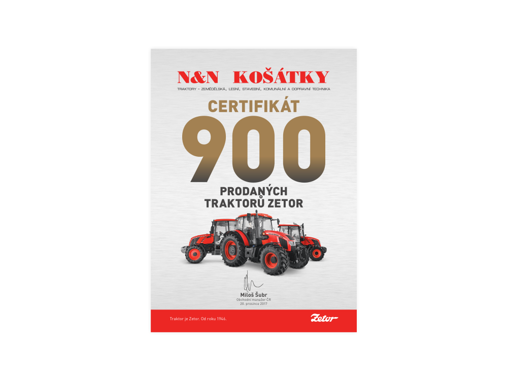 2017 Certifikát za 900 prodaných traktorů Zetor