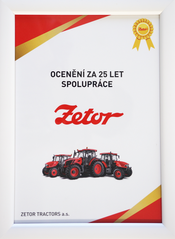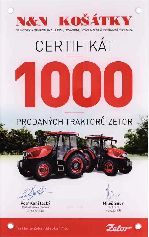 2017 Certifikát za 900 prodaných traktorů Zetor -