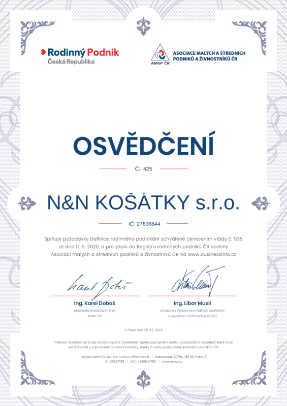 N&N KOŠÁTKY s.r.o., Pelíkovická 724, 463 42 Hodkovice nad Mohelkou, tel.: 602 551 306
