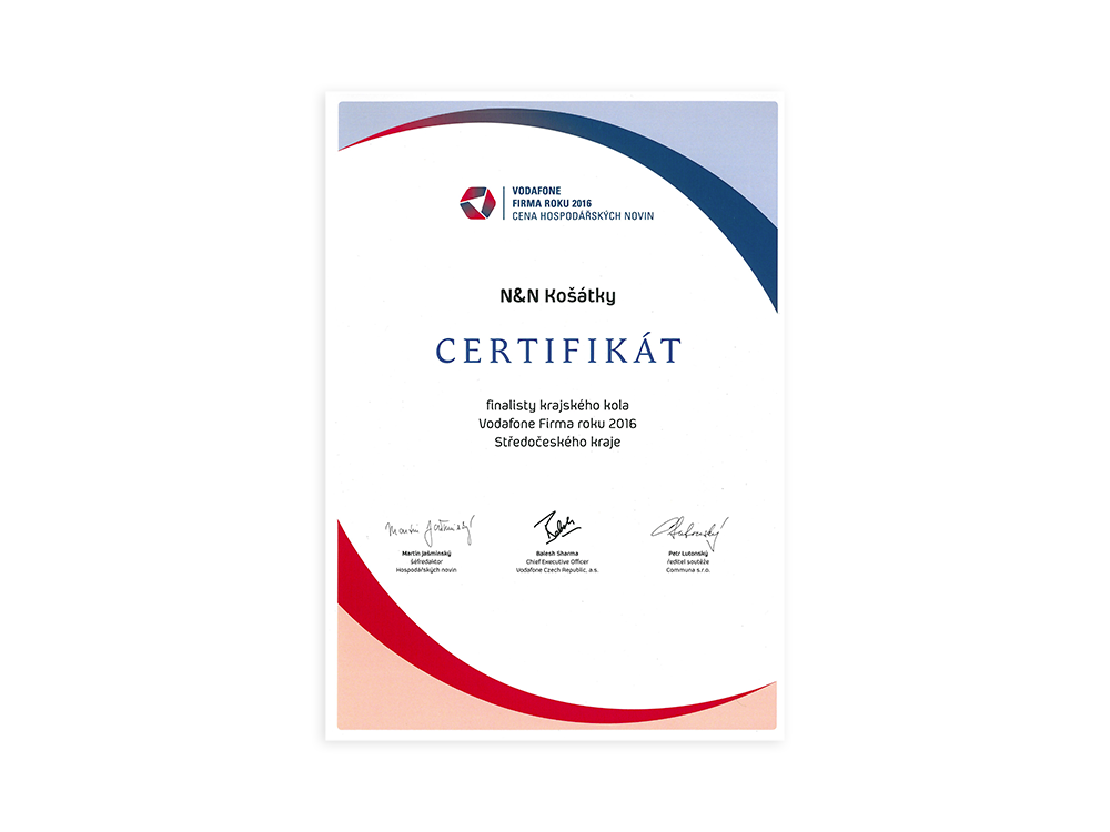 Vodafone Firma roku 2016 - Finalista krajského kola  Středočeského kraje